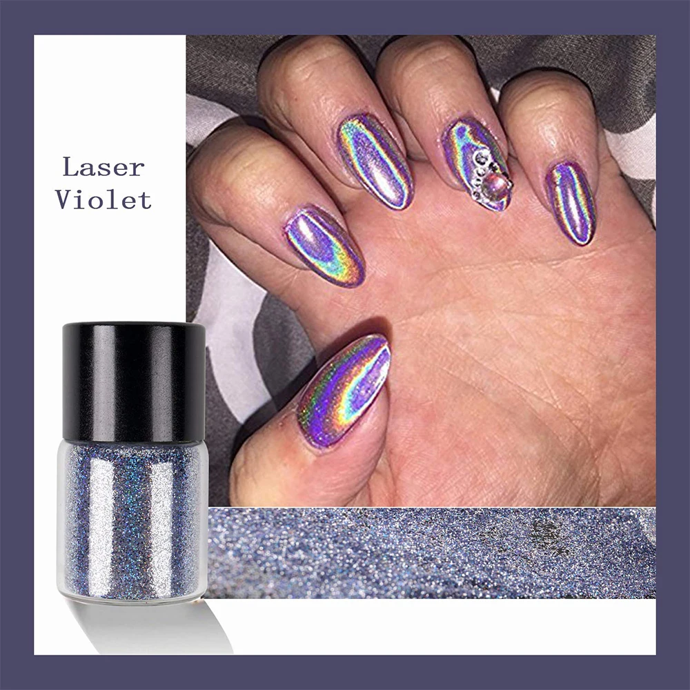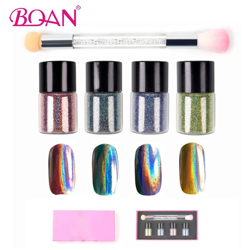 Sale BQAN 4 Colors Nail Holographic Laser Glitter Powder & Double-ended Sponge Brush Nail Art Set Rainbo