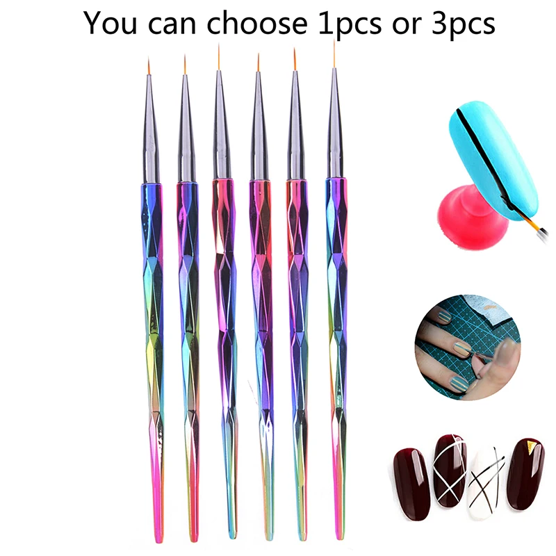 Cheap New French Acrylic Tip Tape Design Manicure Tool Nail Art Brush Rainbow Handle Stripe Liner Pen Flo