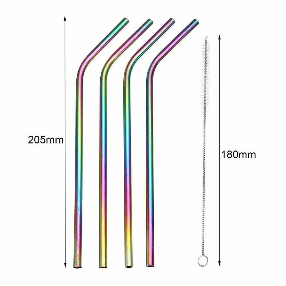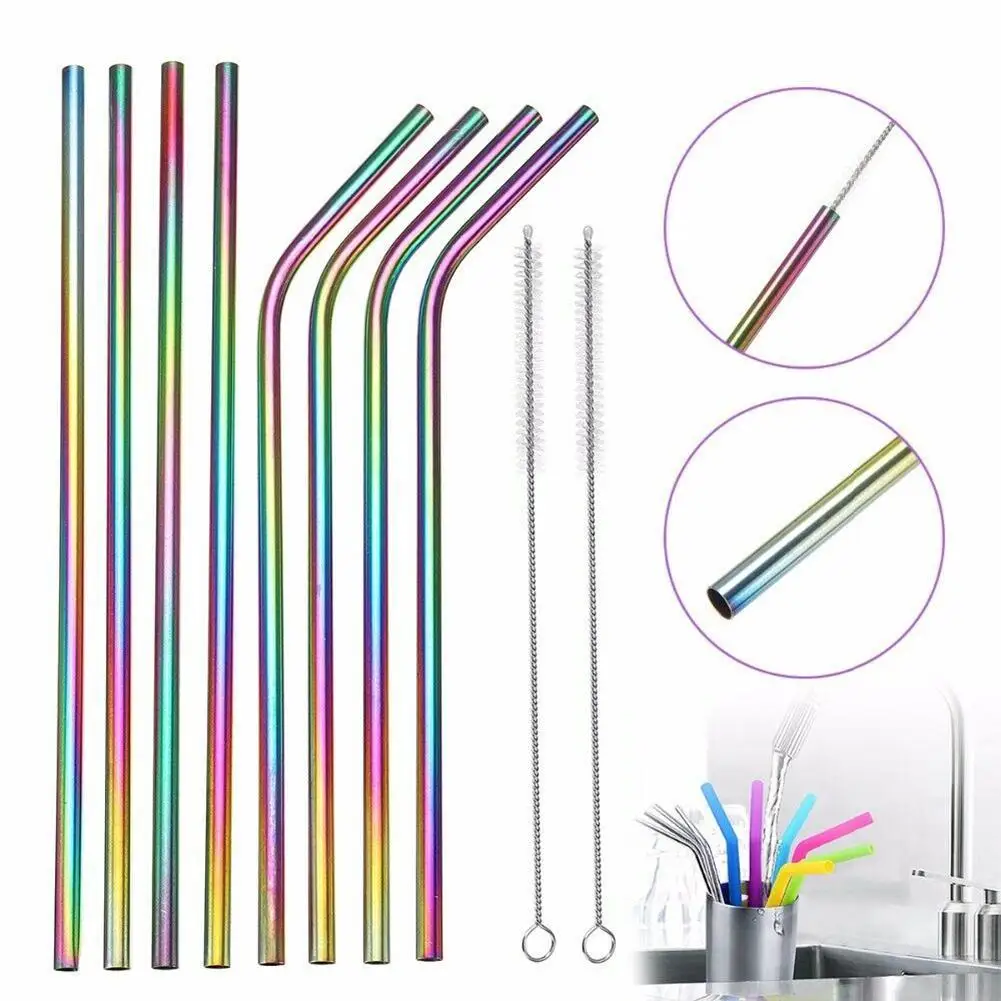 On sale 4/8Pcs Rainbow Color Bubble Stainless Steel Straws Reusable Drinking Straw Milk Metal Straw With Br