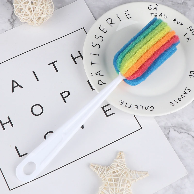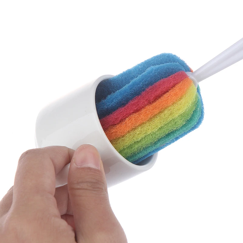 Discount Rainbow Color Cup Brush Kitchen Cleaning Sponge Brush For Wineglass Bottle Coffe Tea Glass Cleaner